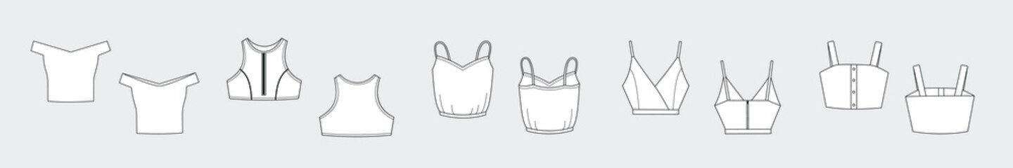 Women Crop Tank Top Fashion Flat Sketch Template Girls Technical Fashion Illustration Binding Straps Apparel Wall Mural Appar Josee