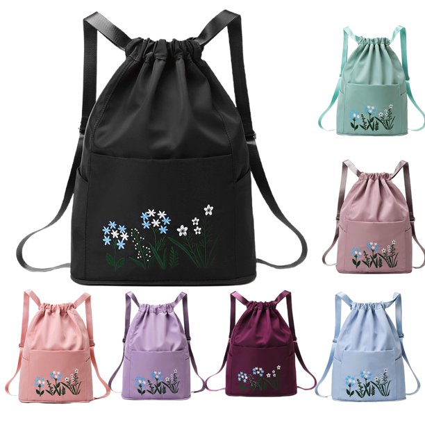 Harmtty Travel Drawstring Bag Waterproof Flower Print Foldable Embroidery Design Drawstring Backpack For Outdoor Sweet Pink Walmart Com