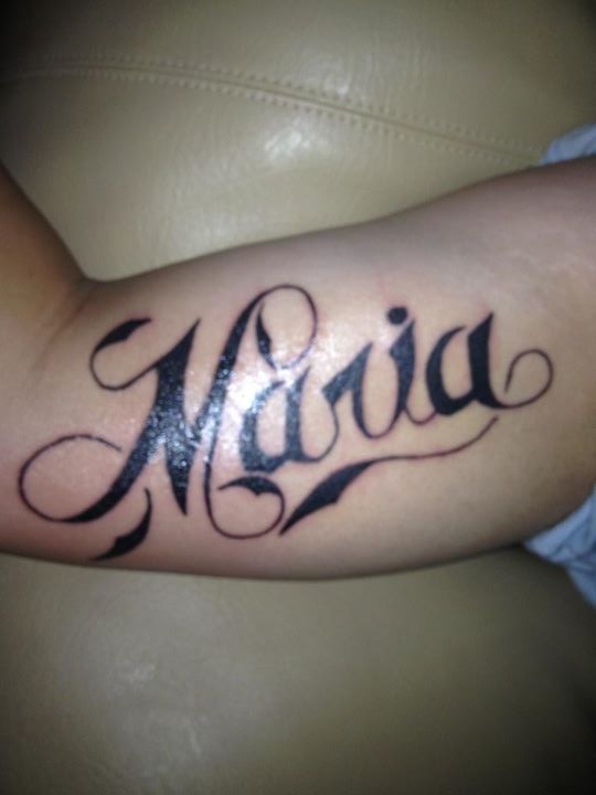 Einfaches Schwarz Geschriebenes Namenstattoo Maria Am Arm Tattooimages Biz